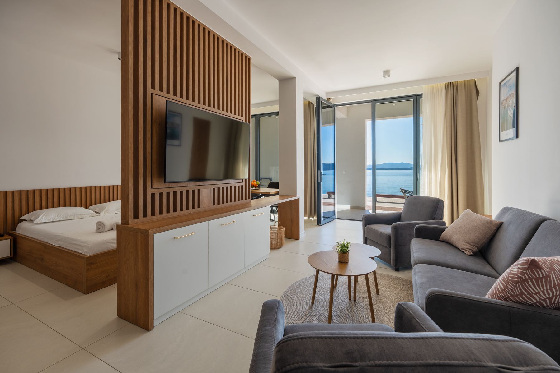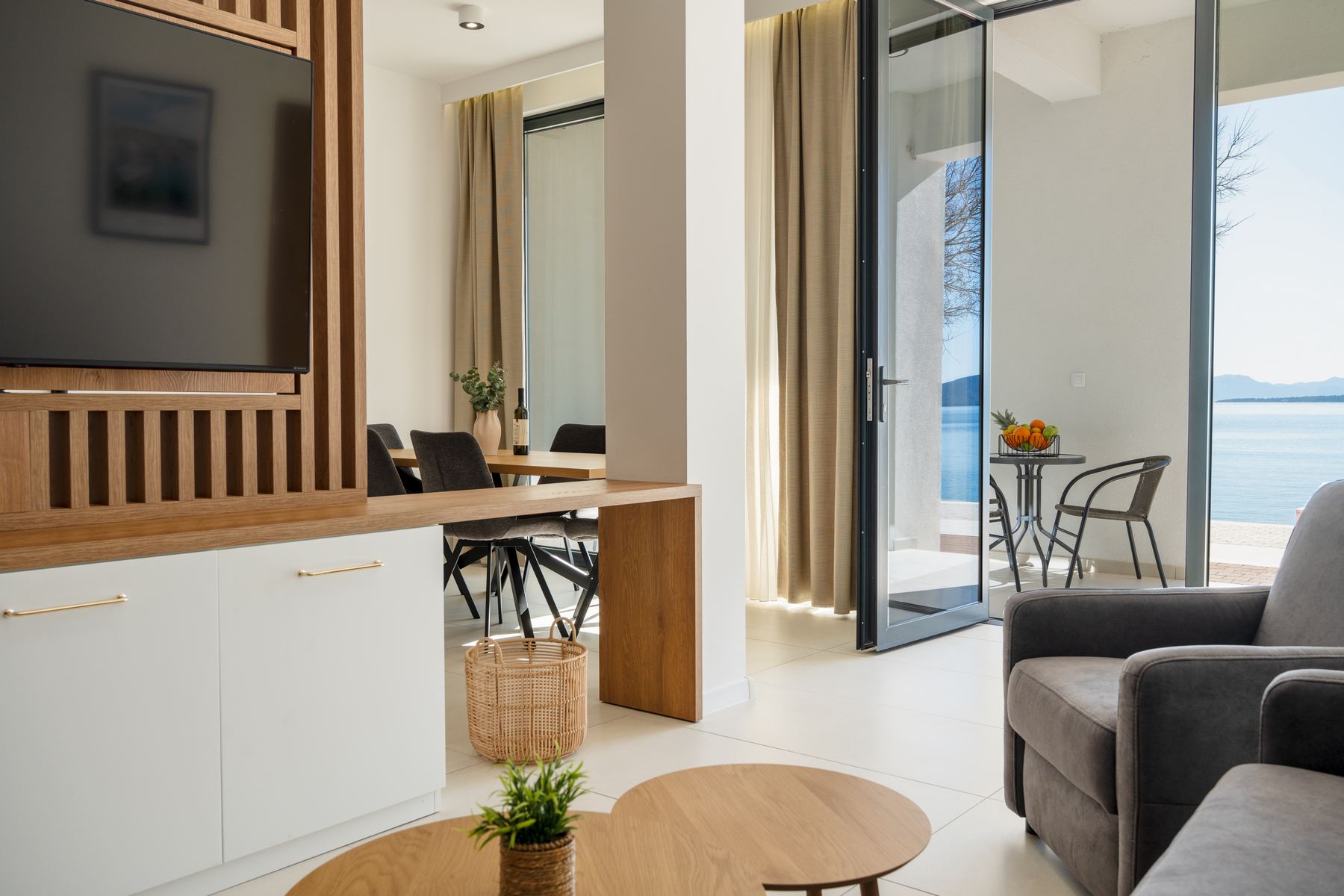 All apartments feature a modern bathroom, kitchen, and a balcony with a direct sea view, while the ground-floor apartment, with its small terrace, offers a special experience of staying close to the Adriatic Sea.