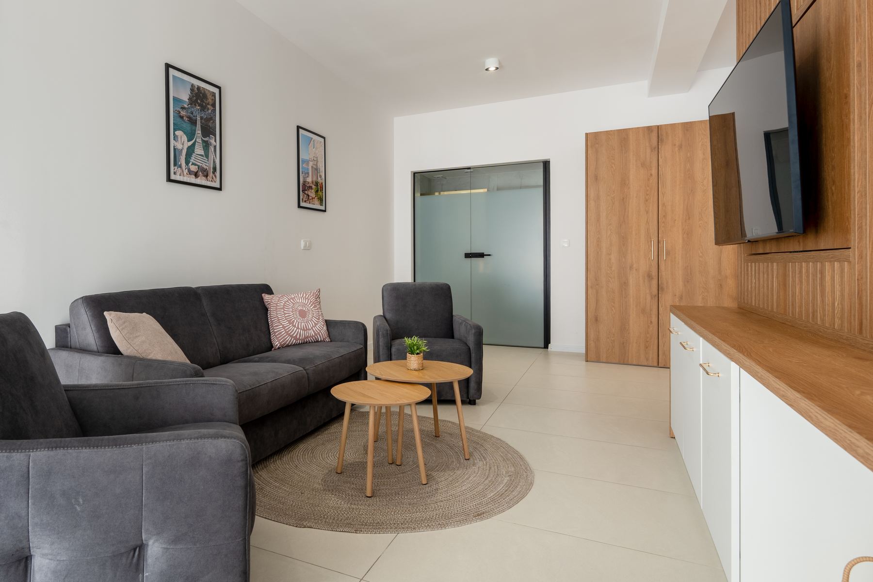The property is spread over three floors and offers several modernly furnished apartments: